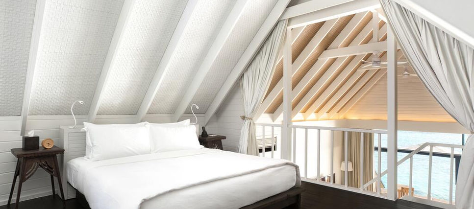 The style of COMO Cocoa Island is like that of no other luxury hotel in the Maldives. With a uniquely local aesthetic, the resort’s 34 suites and villas are inspired by the gently curving wooden forms of the local ‘dhoni’ fishing boats. Each bungalow, connected by a sinuous planked walkway, sits offshore and overhangs the lagoon. Built of New Zealand pine with Kajan thatched roofs, each suite has high raftered ceilings and glossy teak floors. Floor-to-ceiling windows open to substantial decks, blurring the line between inside and out. Blue and white décor further brings the sea, sand and sky into the heart of every room. Some villas have private pools, and each has its own private terrace—all the better for slipping into the warm Maldivian sea, right from your room. Views from the floor-to-ceiling windows look across the watery expanse and horizon, as if you’re floating on the ocean.